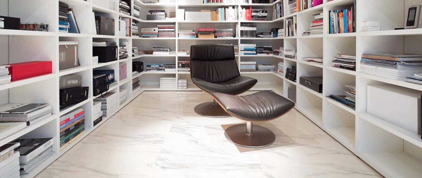 Statuario Mercury imitates natural Statuario Carrara, a white marble from Italy without the inherent variation found in natural products